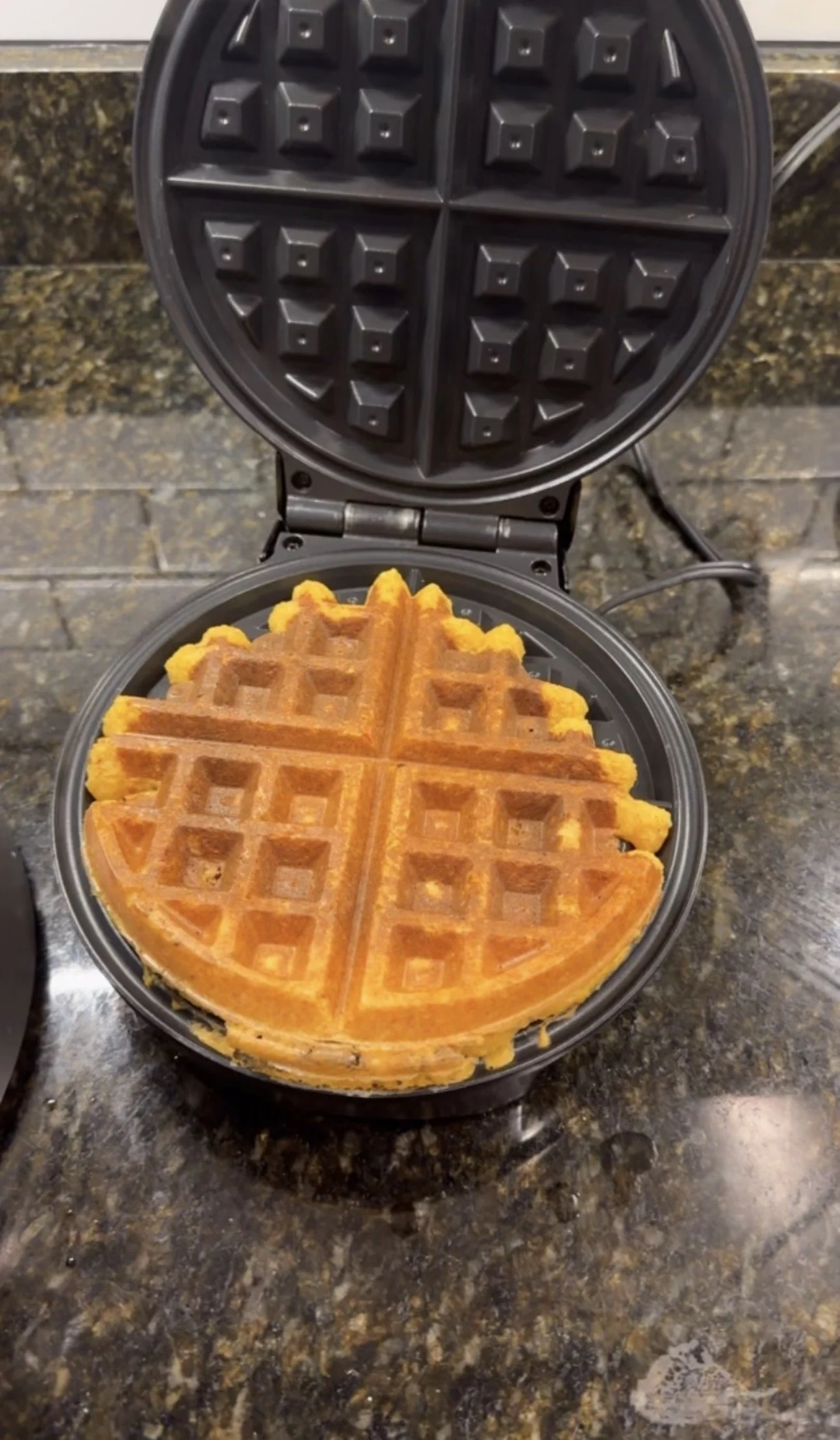 Cook for 4-5 minutes until the steaming stops or until your waffle iron beeps that its ready, depending on your waffle iron.