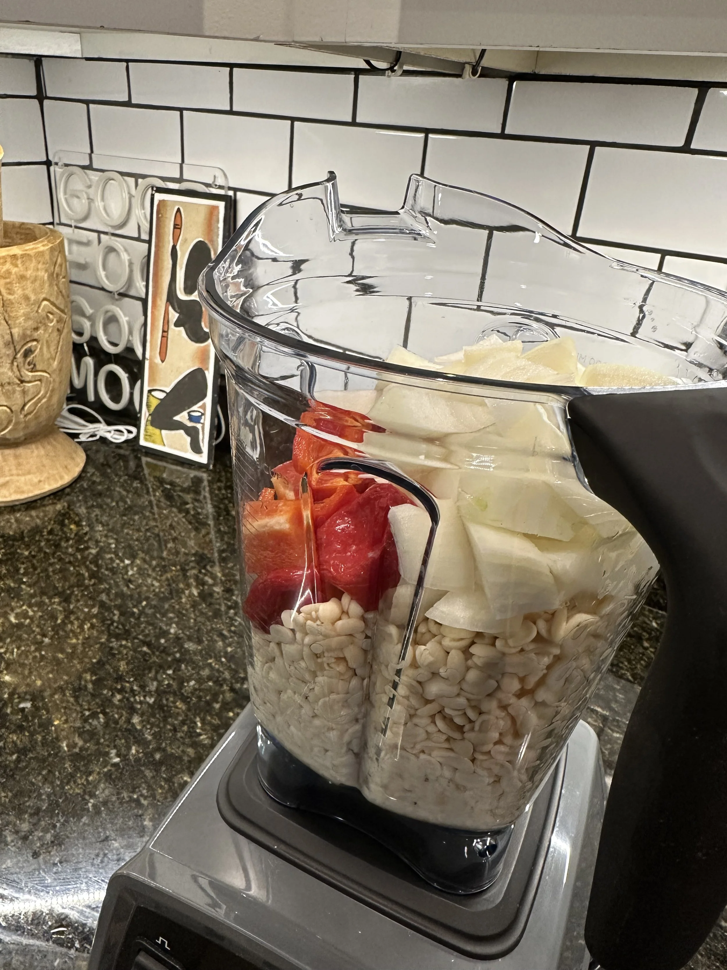 In a blender, puree black eyed peas, habanero, red bell pepper, onion, baking powder, Taste Tutor Seasoning 101, and bouillon for 10-15 minutes or until smooth and airy.