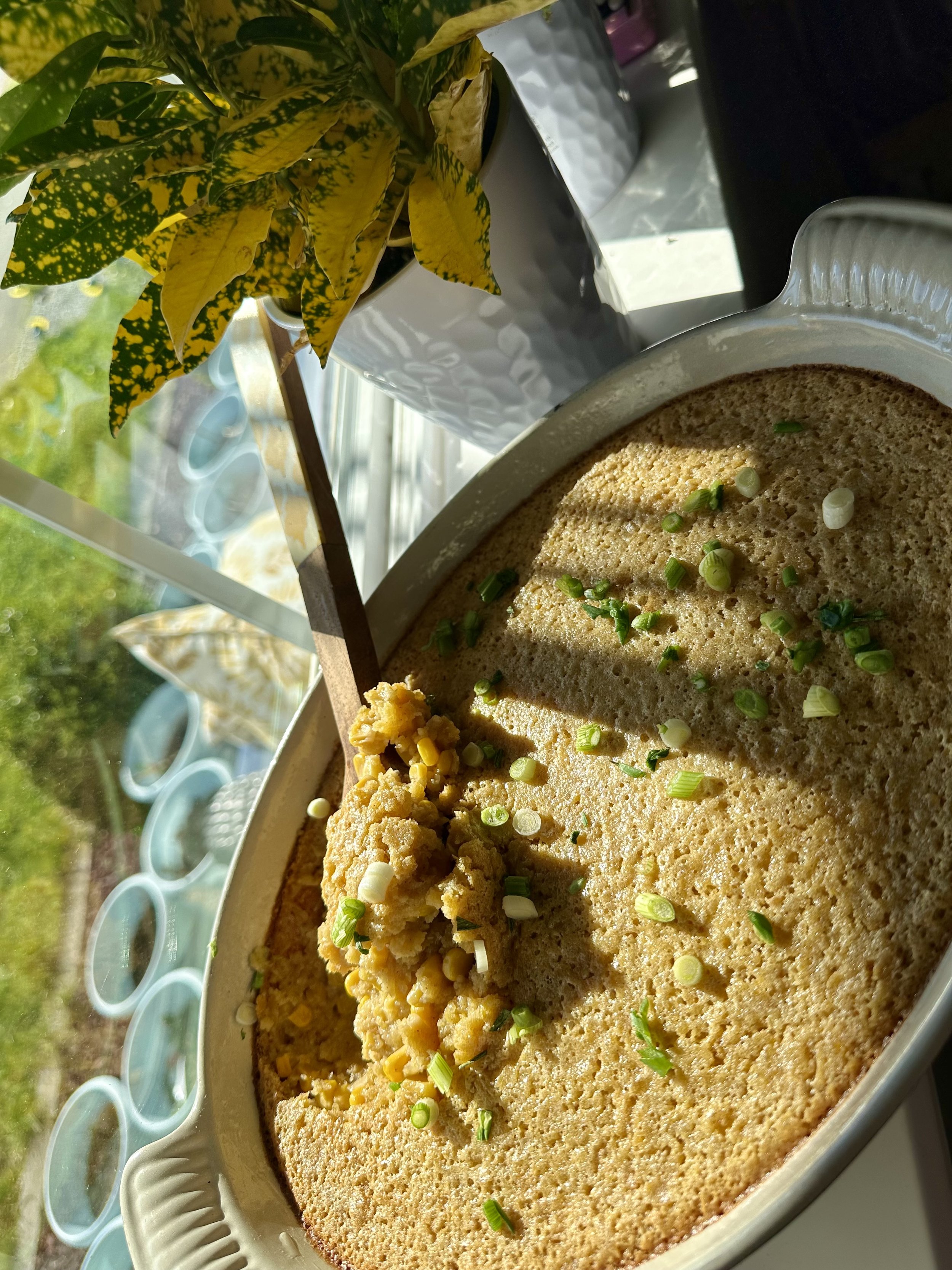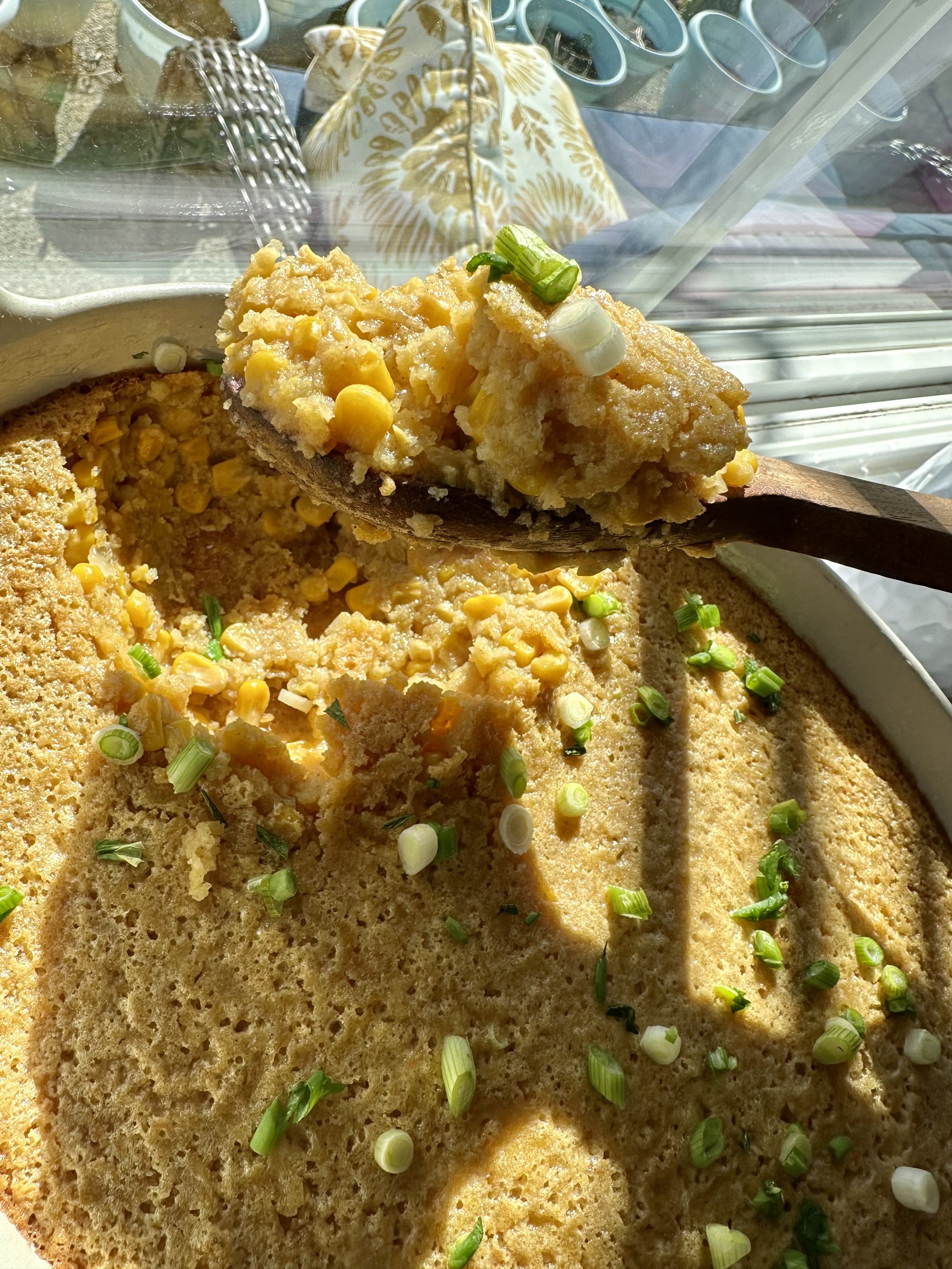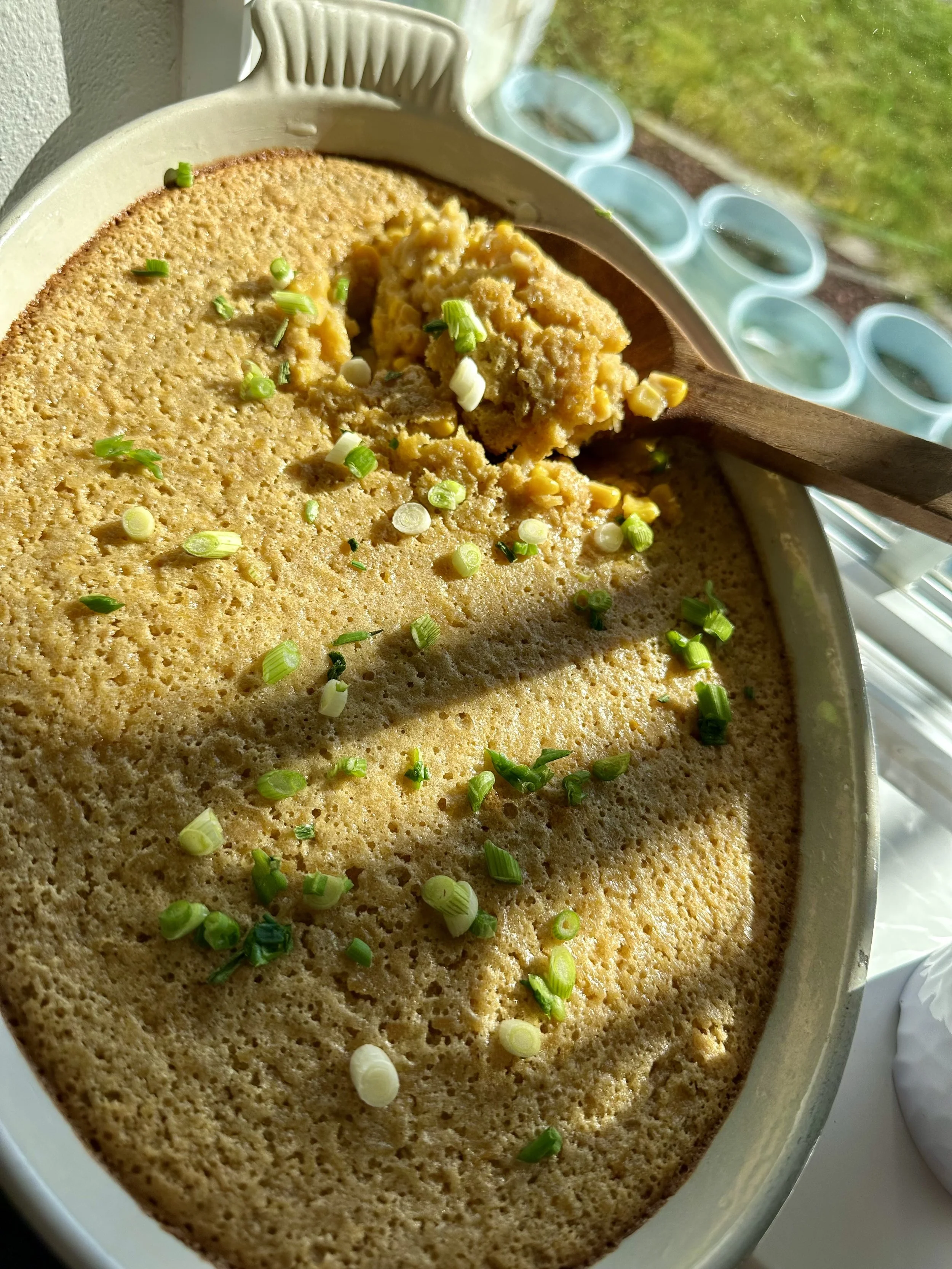 If you'd like a slightly more tangy corn puddin’, swap the heavy cream in the recipe with buttermilk and the mascarpone in the recipe with sour cream.