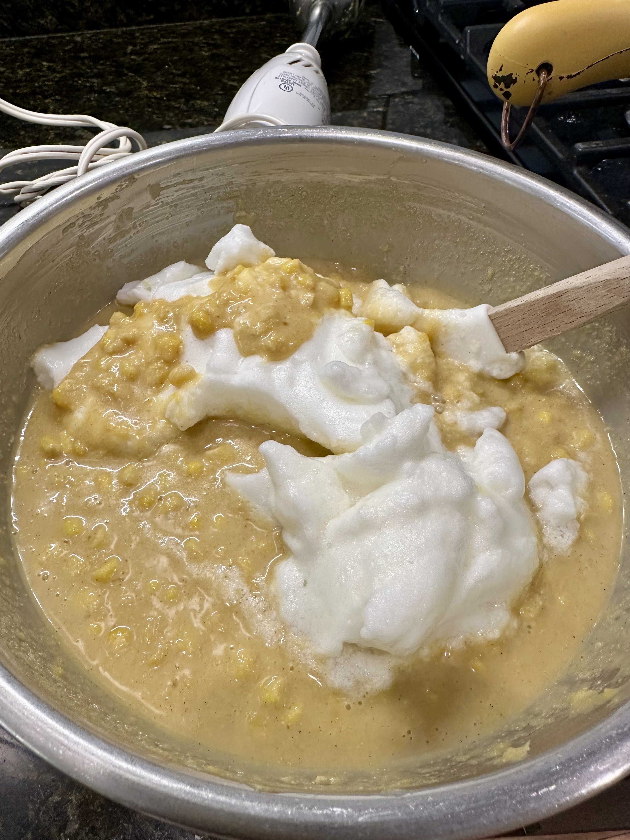 In a clean bowl, whip the egg whites to soft peaks. Gently fold the egg whites into the corn mixture.This step keeps the final dish light instead of dense.