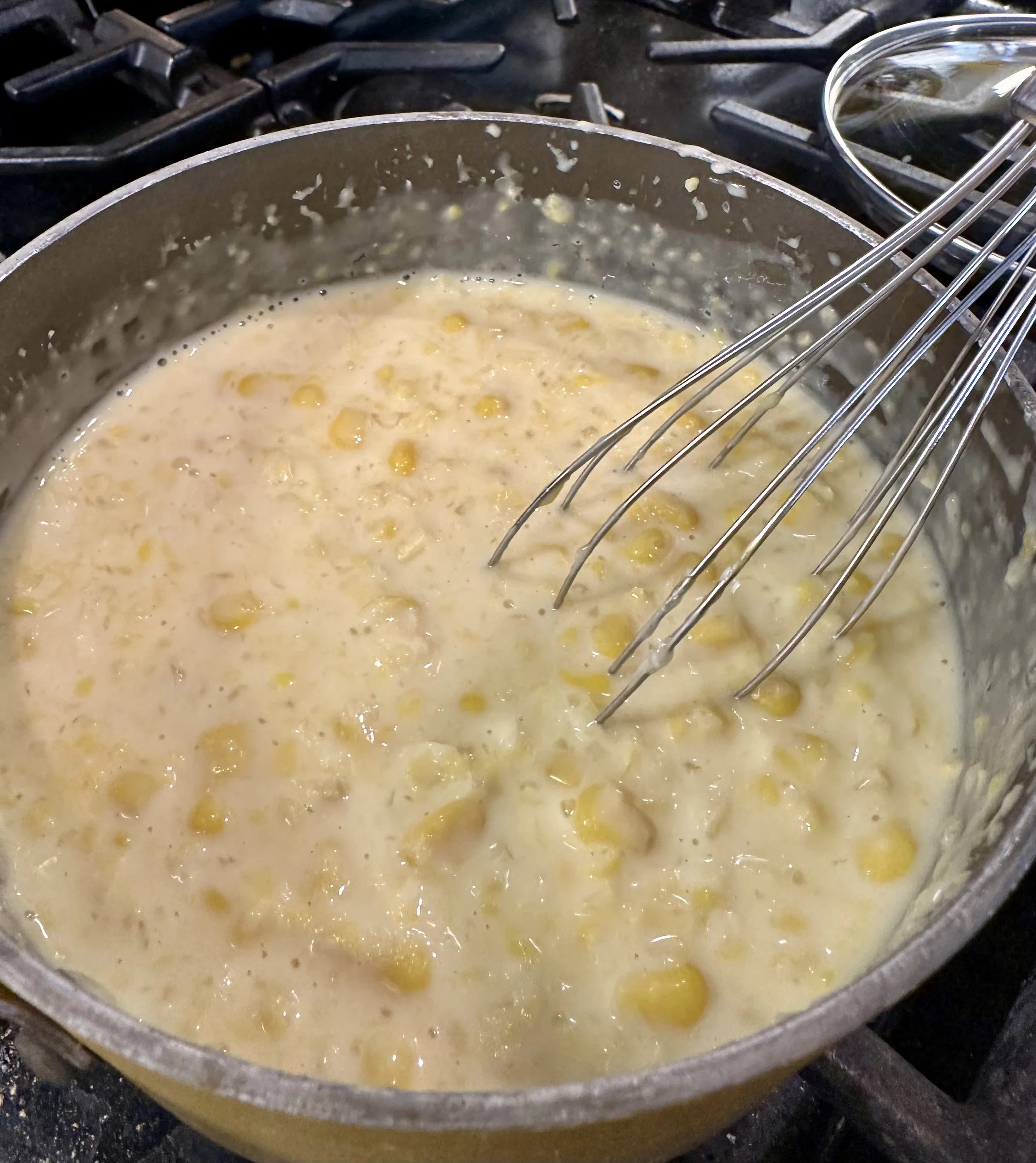 In a small pot, whisk together the undrained sweet corn and cornstarch. Bring to a boil. Remove from heat. Blend the corn mixture until mostly smooth but still slightly textured. Whisk in heavy cream. Set aside.