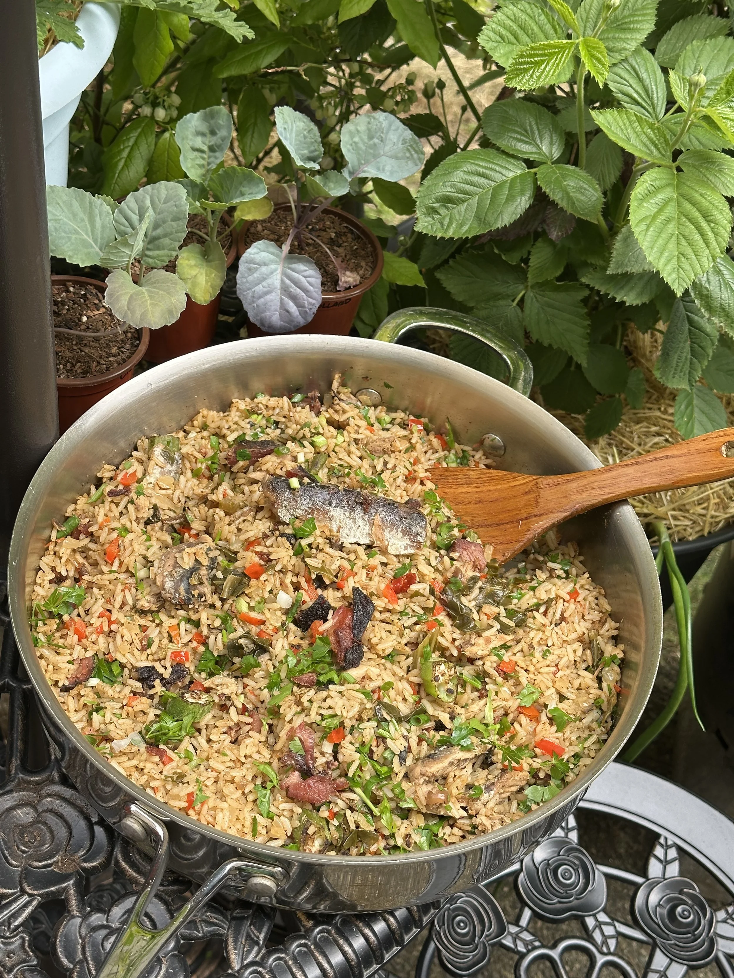I’ve seen people making new recipes with soul food ingredients. Here’s my version of the fried rice I’ve been seeing using leftover soul food items.